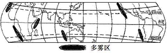 (山东省潍坊市五校联合2010届高三上学期期中考试)读下图(世界海洋多雾区分布图),回答10-11题。