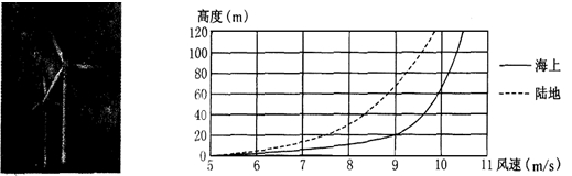 10.图 7 为“陆地与海上风速剖面比较图”,据图判断,为了有效利用风能发电,应使安装发电装置得到风塔高度