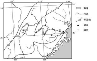 32.东部地区等温线的走向大致与海岸线一致,这说明