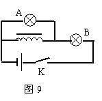 13、如图9所示,A、B两灯相同,L是带铁芯的电阻可不计的线圈,下列说法中正确的是( )