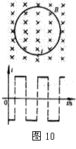 14、一闭合线圈固定在垂直于纸面的匀强磁场中,设向里为磁感强度B的正方向,线圈中的箭头为电流i的正方向(如图10所示).已知线圈中感生电流i随时间而变化的图像如图所示,则磁感强度B随时间而变化的图像可能是( )![]()