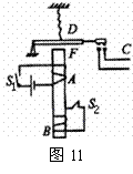 如图11所示是一种延时开关,当S1闭合时,电磁铁F将衔铁D吸下,C线路接通。当S1断开时,由于电磁感应作用,D将延迟一段时间才被释放。则( )