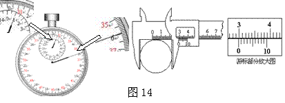 18、某同学在做"利用单摆测重力加速度"实验中,测得摆线长为28.21cm,摆球直径为 cm,然后用秒表记录了单摆振动60次所用的时间(如图14),则:该摆摆长为 cm,秒表所示读数为 s。测得重力加速度的值为 m/s2。(取π2≈9.9)