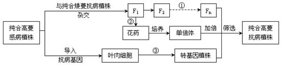 A.过程①的自交代数越多,纯合高蔓抗病植株的比例越高