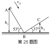 (18分)“嫦娥一号”探月卫星的成功发射,实现了中华民族千年奔月的梦想。假若我国的航天员登上某一星球并在该星球表面上做了如下图所示的力学实验:让质量为m=1.0kg的小滑块以v0=1m/s的初速度从倾角为53°的斜面AB的顶点A滑下,到达B点后恰好能沿倾角为37°的斜面到达C点。不计滑过B点时的机械能损失,滑块与斜面间的动摩擦因数均为