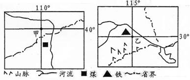 8.根据地理坐标,甲乙两地距离约为 ( )