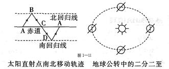 (2)A、B、C三弧分别表示二分二至时