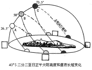 (1)若某日A点和B点的正午太阳高度相同,则太阳直射点位于________(纬度),A点位于 B点的________方向。