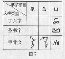 2010.北京东城区综合练习)两河流域、古代埃及地势平缓、山峰不高,黄河流域到处崇山峻岭,同样是为山造字,两河流域的丁头字用三个不连属的山丘表示,埃及圣书字用两个连属的山丘表示,甲骨文用三个连属的山峰表示(图7)。回答2-3题。