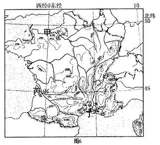 21.该国是世界上重要的农产品生产大国,图中甲、丁地区代表性的园艺作物分别是( )