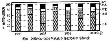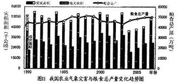 (2)分析2004年以后灾损面积大小对粮食总产量的影响力下降的原因。