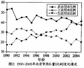 (1)说出该市1990年以来用水量比例变化的趋势,说明用水量比例变化的主要原因。