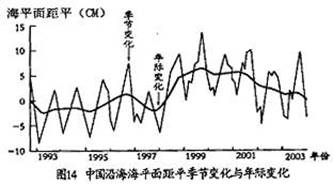 (1)观察并说出中国沿海海平面的季节变化规律,说明产生海平面季节变化的原因。