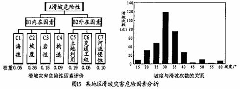 (2)说明该地区滑坡发生次数与坡度的关系,从滑坡危险性的外在因素分析怎样避免和降低坡度对滑坡危险性的影响。