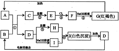 27.(14分)已知下图A-J均为中学化学中常见物质,其中反应①在冶金工业上有重要用途,框图中部分产物已经略去。请回答下列问题: