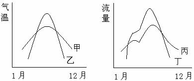 16.湿地被破坏后,表示东北三江平原湿地气温年变化曲线、河流流量年变化曲线的分别是 ( )