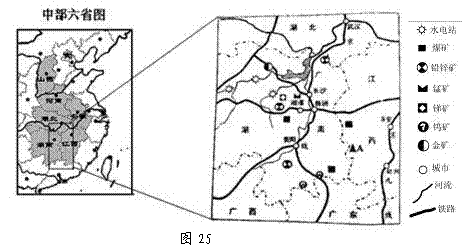 (3) ①气候:该地区属于亚热带季风气候,水热条件好;②地形:洞庭湖平原的平坦地形利于城市的发展;③河流:湘江及其支流为城市发展提供充足的水源和便利的水运条件;④交通:京广、浙赣、湘黔、湘桂等交通干线通过该区。⑤矿产:周围有色金属等矿产资源丰富