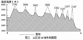 (福建省三明一中2010届高三上学期期中考试)读我国某区域图(图二)及沿AB线的地形剖面图(图三),回答10-11题。