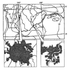 (2)图中B城市为 市,其周围地区农业发展 的主要不利因素及该城市地区主要大气环境问题各是什么?(8分)