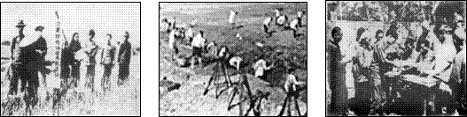 农民在分配土地 人民公社社员在集体劳动 农民领取生产承包合同书