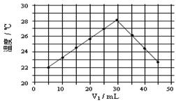 HCl溶液和V2mL未知浓度的NaOH溶液混合均匀后测量并记录溶液温度,实验结果如图所示(实验中始终保持V1+V2=50mL)。下列叙述正确的是( )