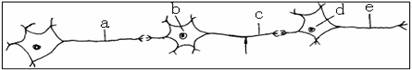 23.下图表示三个通过突触连接的神经元。现于箭头处施加一强刺激,则能测到动作电位的位置是 ( )