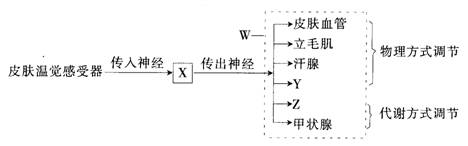 A.X表示大脑皮层体温调节中枢 B.Y表示肾上腺
