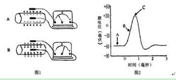 42(8分).下图1是测量神经纤维膜内外电位的装置,图2是测得的膜电位变化。请回答: