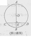 11.(2010年镇江市)如图,AB是⊙O的直径,弦CD⊥AB,垂足为E,若AB=10,CD=8,则线段OE的长为 3 .