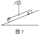 13.一条形磁铁静止在斜面上,有一水平导线固定在磁铁中心的竖直上方,导线中通有垂直纸面向里的恒定电流I,如图7所示,若将磁铁的N极与S极对调后,仍放在斜面上原来的位置,则磁铁对斜面的压力FN和摩擦力Ff的变化情况分别是 ( C )