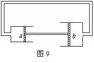 如图9所示,两个水平相对放置的气缸由管道相通,轻质活塞a、b用钢性轻杆固连,可在气缸内无摩擦地移动,两活塞面积分别为Sa和Sb,且Sa<Sb。缸内及管中封有一定质量的气体,整个系统处于平衡状态,大气压强不变。现令缸内气体的温度缓慢升高一点,则系统再次达到平衡状态时