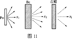 如图11所示,由天然放射性元素钋(Po)放出的射线χ1,轰击铍(49Be) 时会产生粒子流χ2,用粒子流χ2轰击石蜡时会打出粒子流χ3,经研究知道( AC )