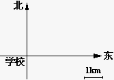 2、小明的家在学校的北偏东45°方向,距离学校 3km 的地方,请在图(2)中标出小明家 P 的位置。