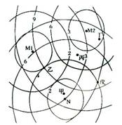 9.某企业生产必需的两种原料分别来源于M1、M2,N是该企业的唯一市场,以M1、M2为圆心的同心圆分别代表该原料单位重量的等运费线,以N为圆心的同心圆代表单位产品的等运费线,生产一个单位产品,需要1个单位M1,1个单位M2,如果只考虑运费因素,下列四个地点最适合建厂的是
