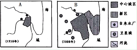(2)该城市建立了________城和________区,有利于城市经济的进一步发展和保护、改善城市环境。