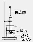 (10分)如图所示,把试管放入盛有25℃饱和石灰水的烧杯中,试管开始放入几小块镁片,再用滴管滴入5mL盐酸于试管中。试回答下列问题: