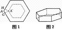 6、将一块正六边形硬纸片(图1),做成一个底面仍为正六边形且高相等的无盖纸盒(侧面均垂直于底面,见图 2),需在每个顶点剪去一个四边形,如图1中的四边形AGA'H