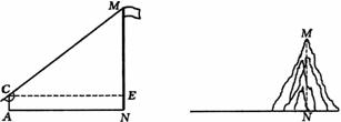 ③ 量出测倾器的高度 AC=h,根据上述测量数据,即可求出旗杆的高度MN。