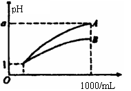 pH=1的两种酸溶液A、B各1mL,分别加水稀释到1000mL,其pH与溶液体积(V)的关系如图示,下列说法不正确的是 ( )