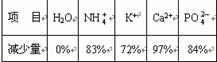 10、将等量的NH+4、PO3-4、K+、Ca2+共同置于500mL水中,再放入一些新鲜的水稻根尖,几小时后测定混合液中上述四种离子和水的含量变化如下:下列分析与解释正确的是:( )