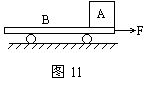 在光滑的水平面上放着物体A和小车B,如图11所示,小车长L=2m,M=4kg,A的质量m=1kg,μAB=0.2,加在小车上的力(1)F=5N,(2)F=12N,求在这两种情况下,在2s时间内F对车做功是多少?摩擦力对A做功多少?(g取10m/s2)