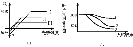(4)图乙中表示乔木叶肉细胞的相对含水量与光照强度之间的关系的是曲线___________。