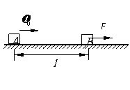 如图所示,水平面上放有质量均为m=1kg的物块A和B,A、B与地面的动磨擦因数分别为μ1=0.4和μ2=0.1,相距l=0.75m。现给物块A一初速度使之向B运动,与此同时给物块B一个F=3N水平向右的力由静止开始运动,经过一段时间A恰好能追上B。g=10m/s2。求: