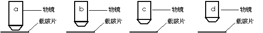 3. 用显微镜的一个目镜分别与4个不同倍数的物镜组合来观察血细胞涂片。当成像清晰时,每一物镜与载玻片的距离如图所示。如果载玻片位置不变,用哪一物镜在一个视野中看到的细胞最大 ( )
