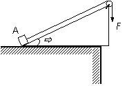 15.物块A静止在光滑斜面的底端,斜面倾角α=30°,斜面的长为l=1m,斜面固定在水平桌面上。用轻绳跨过斜面顶端的轻滑轮与物块A连接,滑轮与转轴之间的摩擦不计,开始绳刚好绷直,如图所示。若在绳的末端施一竖直向下的恒力F=7N拉绳,物块A由斜面底端到顶端经历的时间为1s。取重力加速度g=10m/s2。