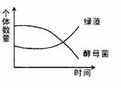 在培养条件完全相同的情况下,用一种培养液分别培养单细胞绿藻和单细胞酵母菌,培养结果如右图所示。造成图示结果的最可能原因是( )