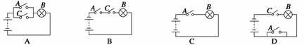 6.在下列电路图中,表示开关A闭合是灯泡B亮的必要但不充分条件的线路图是 ( )