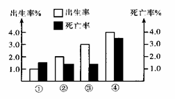 下图是“某4个国家的人口出生率和死亡率图”,读图并完成1-5题。