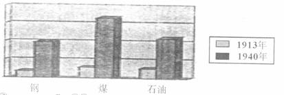 19.下图反映了苏联1913午与1940年工业生产中钢铁、煤炭、石油工业的变化,从中能得到的历史结论有 ( )