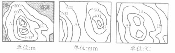 (3)根据图中资料说明A、B两点气温差异及原因。(4分)